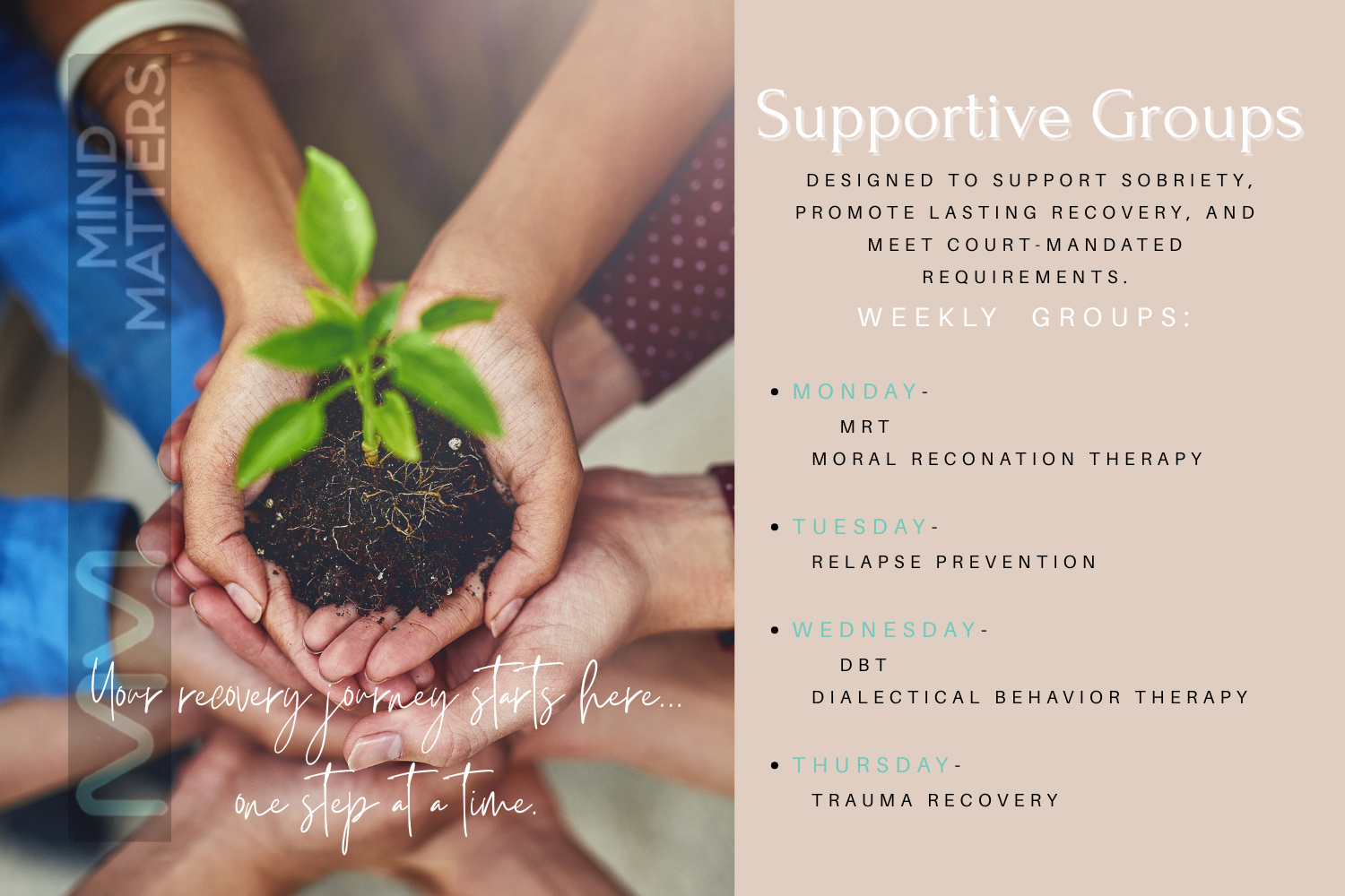 Our weekly groups help individuals strengthen emotional well-being, improve relationships, and move forward—whether for personal growth, recovery, or court-ordered requirements.